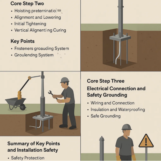 La stabilità del palo della luce inizia da una base solida. Questo è il primo passaggio cruciale dell'intero processo di installazione.